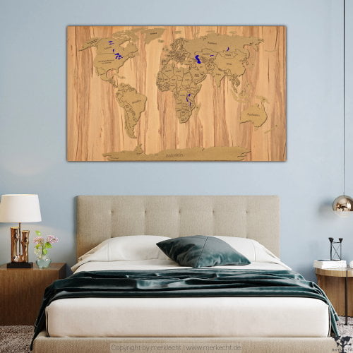 Bei merk!echt sind wir nicht nur die Hersteller der einzigartigen Weltkarten, sondern auch leidenschaftliche Bewunderer der Kunstwerke. Hier präsentieren wir unsere persönlichen Highlights und Kombinationen der Weltkarte 'Tasman'.